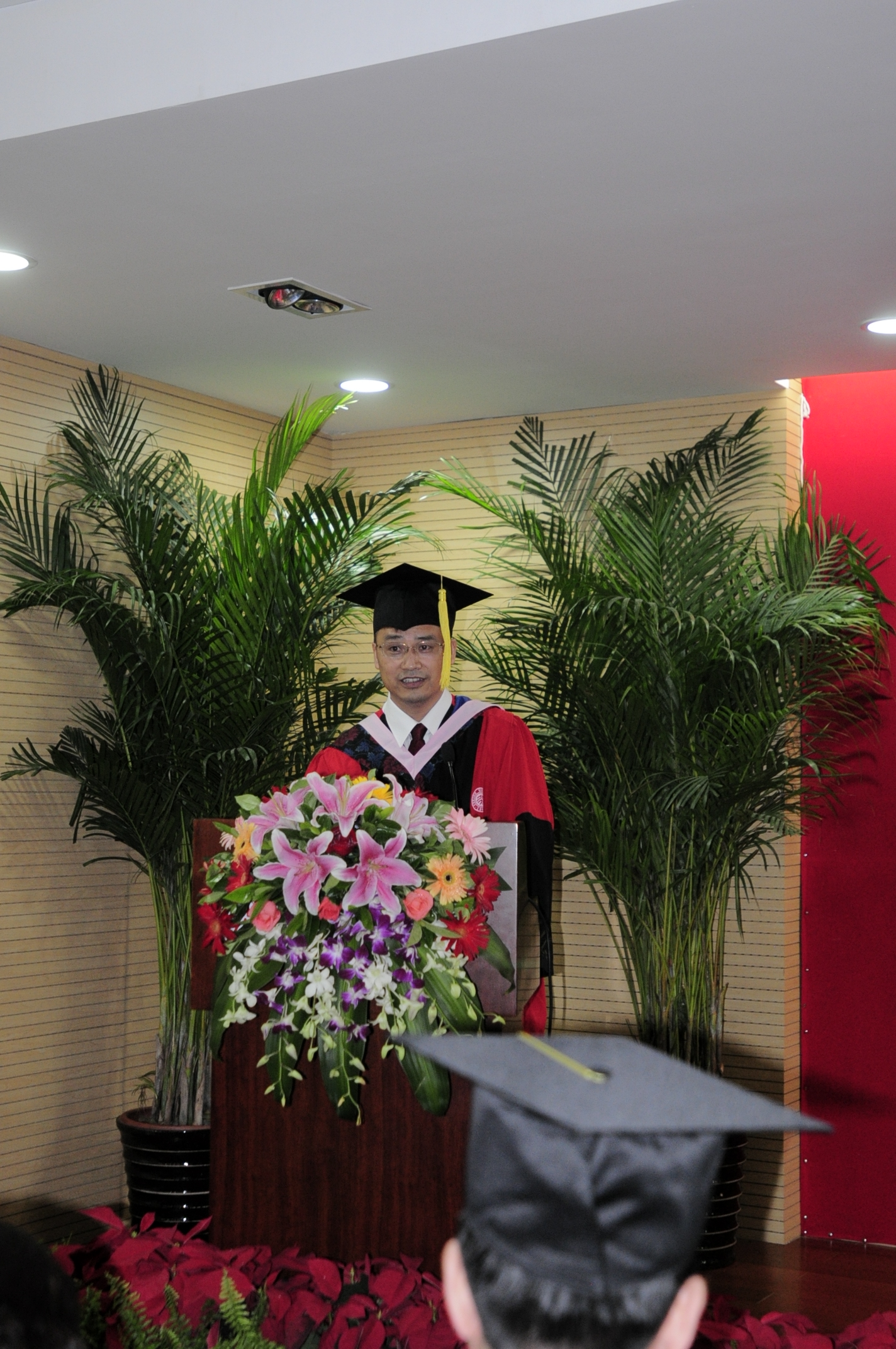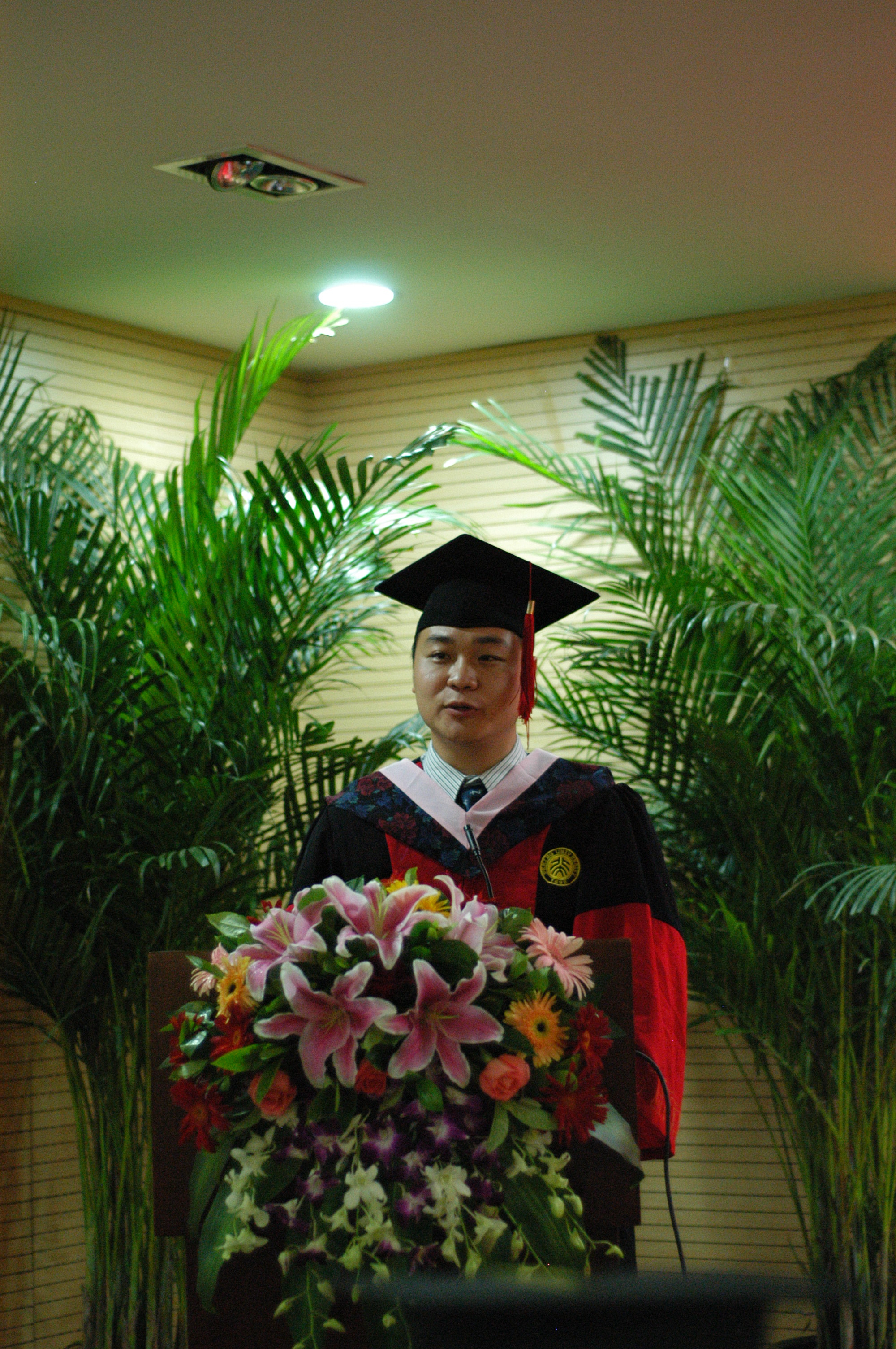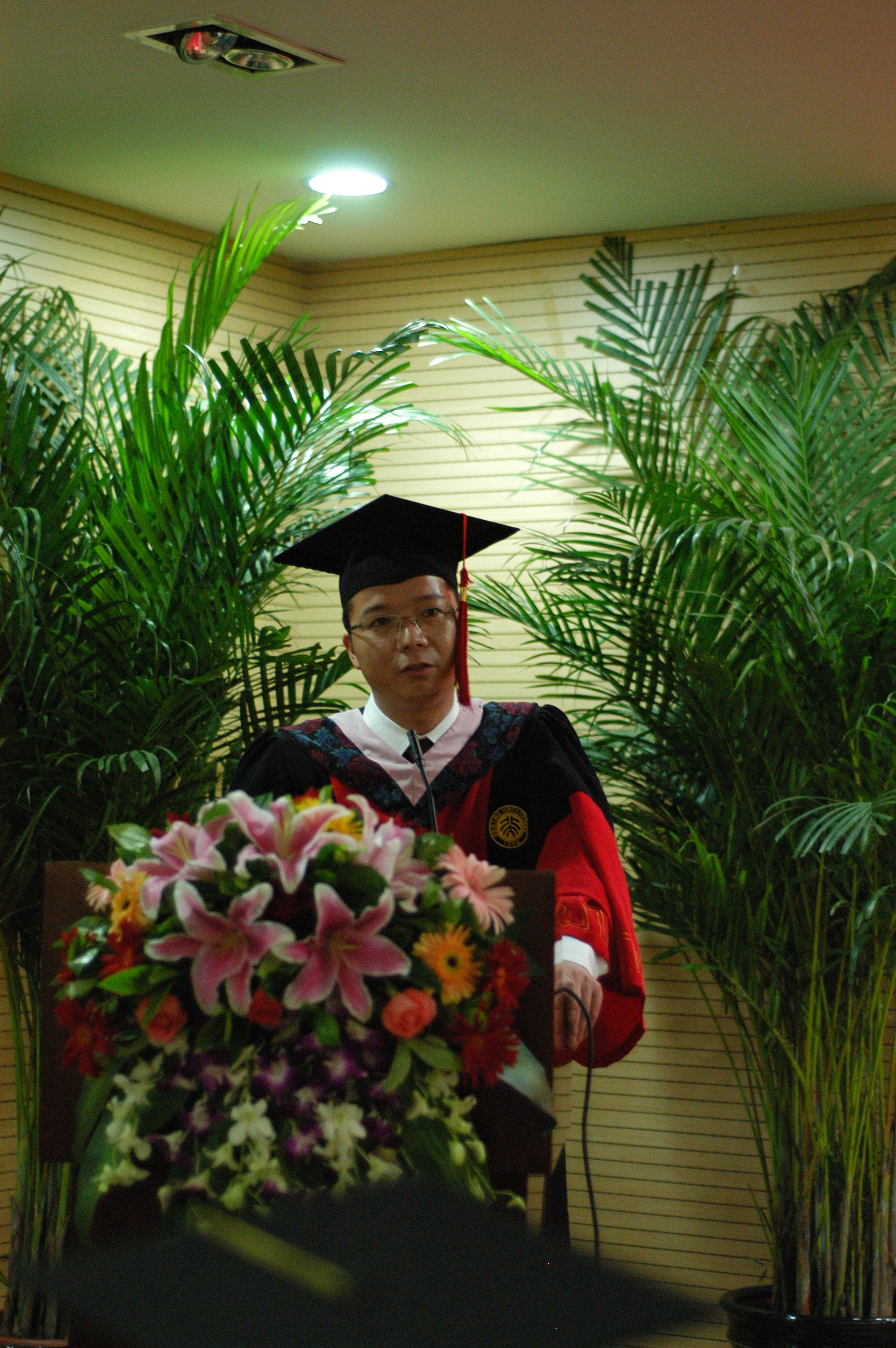高级教育行政管理专业毕业生陈恒代表全体Ed.D.毕业生向教育学院全体老师表示了无限的感激和崇高的敬意,并通过“过程”、“方法”和“境界”三个关键词概括了北大教育学院究竟带给了毕业生什么,毕业生从这里收获了什么。