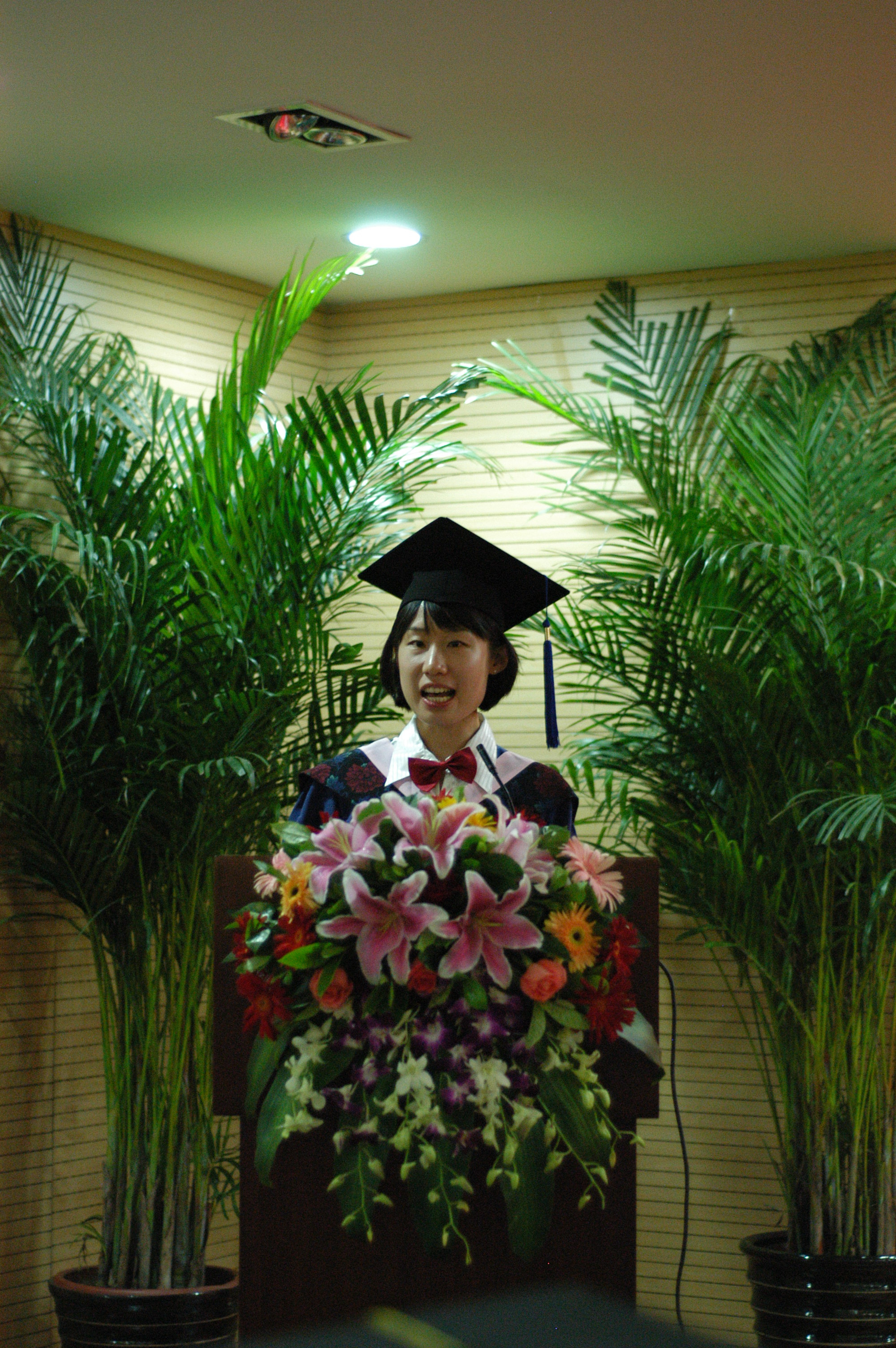 教育技术系硕士毕业生阎妍代表全体硕士毕业生对教育学院的培养表示诚挚的感谢,并希望和全体毕业生一起,在走上工作岗位以后, “做有品位、有情调的知识分子,爱自己的家人、朋友、同事和领导,享受工作和生活中值得享受的内容,成为一个会工作也会生活的人”。